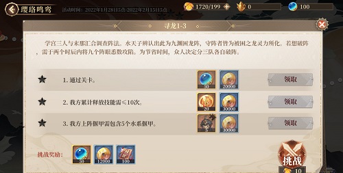 ④活动期间,偃师大人可通过完成评星关卡中星级任务领取奖励,完成任务越多,星级评定越多,可领取的奖励越丰厚。