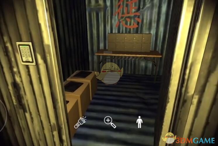 获取【搬运货物】线索后,去将【纸箱货物】搬走,出现一个暗门,需要输入密码打开暗门(密码是:45681),图中“惩字”下面就是格子架