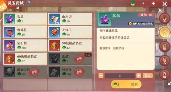 2、其次比较推荐玩家选择貔貅符和宝石袋,还可以根据需求购买折扣玄晶。