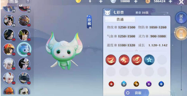 玩家通过珍兽挑战第五关获胜后,就可以免费获得七彩兽这个免费的灵兽了,这只灵兽的品质为珍稀。