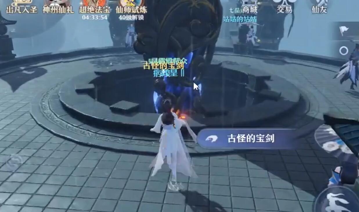 2、靠近这个圆盘,点击古怪的宝剑,开启任务;