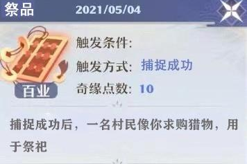 捕捉成功后,一名村民向你求购猎物,用于祭祀