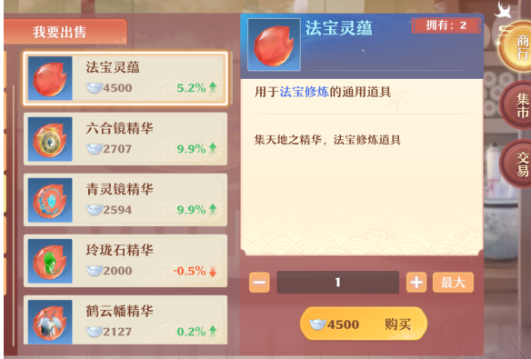 而且法宝灵蕴需求也大,自用也好,还是目前屯着卖了也好,都是不错的选择。