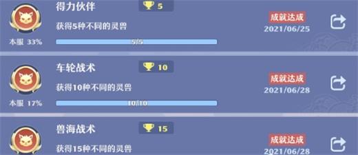 (4)【灵兽】,获得不同灵兽的3个成就很好完成,直接用铜钱去集市买,把各等级你没有获得过的买一下就有15种了。