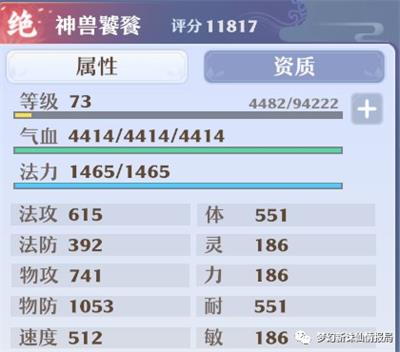 无论是PVE还是PVP,我觉得饕餮只要用这一套加点就很牛X:【5体5耐】,加上高级毒系亲和、高级重生、高级健壮、高级格挡、高级吉星,宝衣选择+气血法功,在73级能够达到4400+气血和1000+的物防,弱点在于法防较低,如果不是单体法术伤害爆发还是可以撑住的