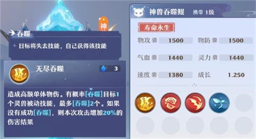 2、最高可以吞噬灵兽2个被动技能,钥匙没有吞噬成功,将会增加本次攻击20%。