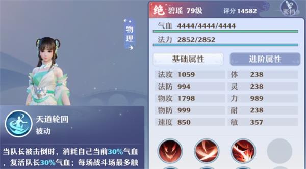 突破后激活的被动技能【天道轮回】,能够在自身存活时拉死亡的队长1次,群英榜的神技之一,多物理阵容的核心。