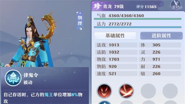 青龙比较容易被忽视的一点是:只要上场就能让鬼王获得额外增强物攻的BUFF,如果自身持续存活,那么就能持续提供BUFF。
