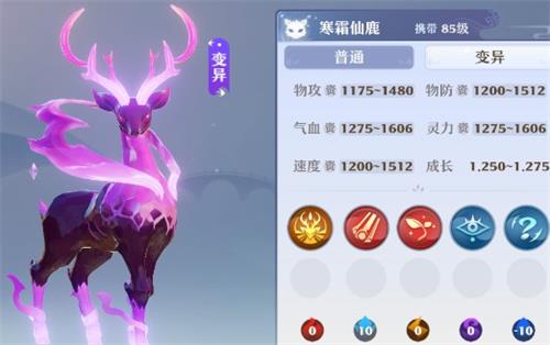 资质方面,寒霜仙鹿拥有目前最高的1.275成长,气血和灵力都非常突出,是一只不折不扣的耐法宝宝!如果搭配满级鸟阵速度也不会低,必将是一个月之后的大杀器!