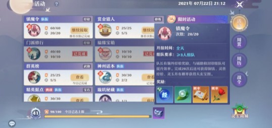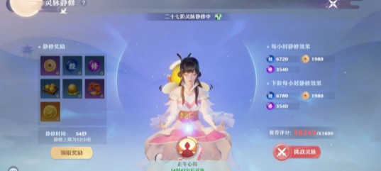 1、我们通过完成灵脉静修的挑战,可以获取到非常多的升级素材奖励,有铜钱、经验、金丹、妖兽玉玦等等,而且还是每分钟实时结算的,我们挑战一次十分钟左右就可以查看到自己的奖励了,非常的方便;