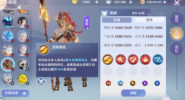 烈焰缭乱 对目标多人发动3次火系物理攻击 有概率攻击相同目标单位 如果造成击杀下次主动攻击提升百分之10的伤害结果