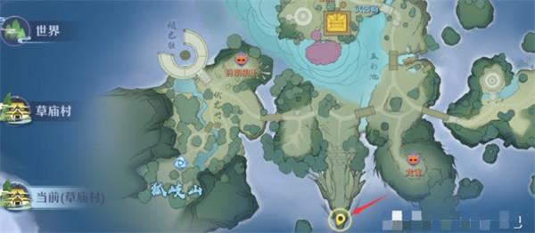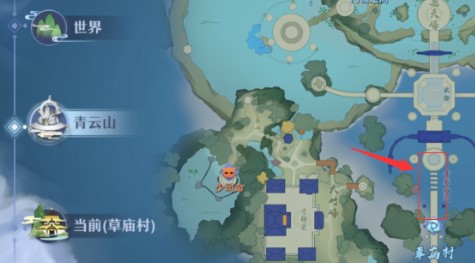 3.完成信件奇缘后,即可前往草庙村龙头位置触发祭拜奇缘。无需雨天即可触发,只需要等待奇缘内置30分钟CD过去,点击墓碑即可触发。触发位置如下图所示: