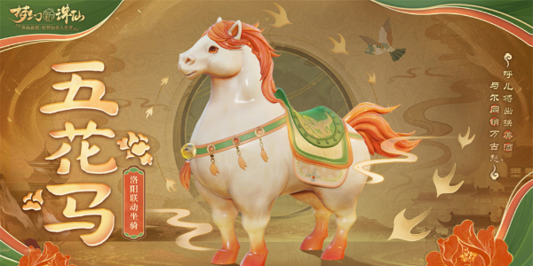 再现国宝之美,更见盛唐之姿!全新坐骑五花马正式登场,道友可通过连续7日完成专属活动踏歌行,免费获得同款观赏坐骑·五花马!憨态可掬的它身怀心情技能[萌趣],为统御灵兽更便捷的提升经验!赶快跨上唐三彩所乘骑的马儿,一起领略“五花马,千金裘,呼儿将出换美酒,与尔同消万古愁!”所描摹的盛唐之景!