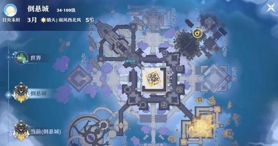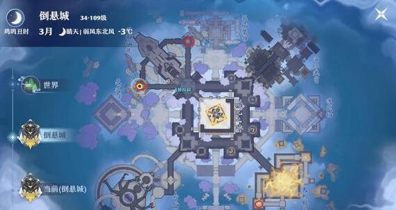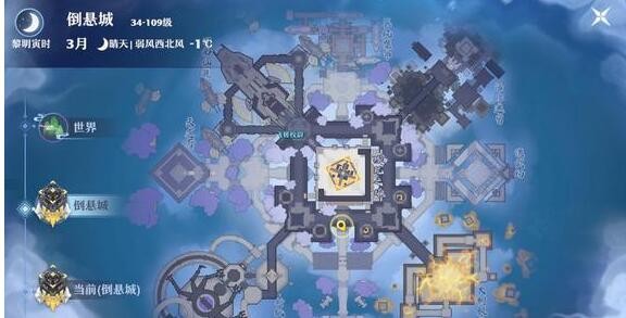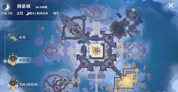 倒悬城地图乘坐飞槎即有概率触发,如图位置乘坐飞槎即可。