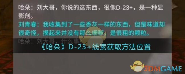 以上就是小编整理带来的《孙美琪疑案:哈朵》》D-23+线索获取方法位置介绍,大家还喜欢吗?更多精彩内容,请点击关注手游网,小编将持续为您更新!