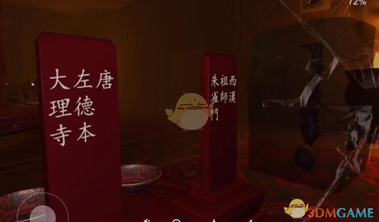 在获得线索「一首曲子」之后点击古筝,「屏风」后的镜子就消失了,再点击「拉杆」,「另一面镜子」就会打开从而进入里面的房间,这是一个审讯室