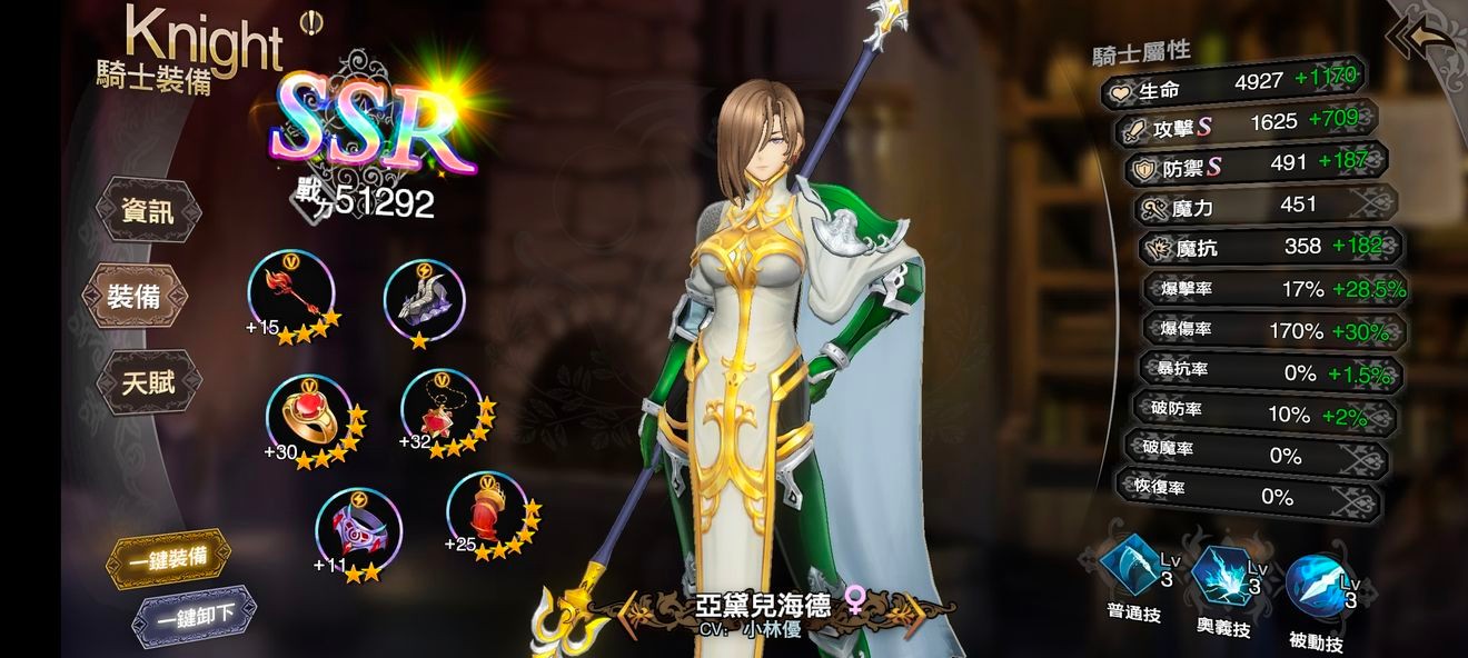 前期可能不如里昂出众,但是投入资源培养起来以后,伤害十分爆炸。高级竞技场出场几率很高。普通攻击3级以后能直接攻击到后排角色,暴击甚至可以秒杀脆皮,大范围的高伤大招,被嘲讽一样可以切到其他角色。并且生存能力也不错。缺点就是前期不算太出众,打BOSS战没办法发挥被动,所以BOSS战伤害强度赶不上其他职业,但是清小怪效率极高。