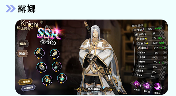 装备推荐启示套,战斗开始时增加一点能量,同时增加魔力输出。