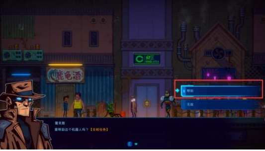 我们通过电梯回到上层,叫做布鲁的机器人会晕倒,和他说话后可以选择接取【帮助布鲁】的支线任务。