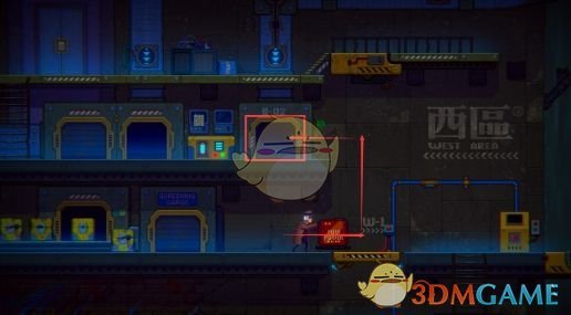 沿下图路线一路走来,拿到垃圾堆上的【按摩棒】(恶趣味~),最底层向左走会遇见之前的两个小孩,萝拉和罗宾,萝拉会把你被偷的包还给你,这样就拿回了白色通行卡。然后从右边写有“卯区”的白门进入。