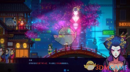 继续往右到大桥上,遇到我们要找的全息影像导游花音,但是她受损了,没法说话,需要我们进行修理。