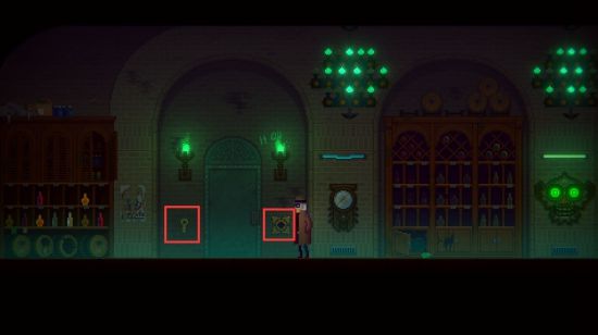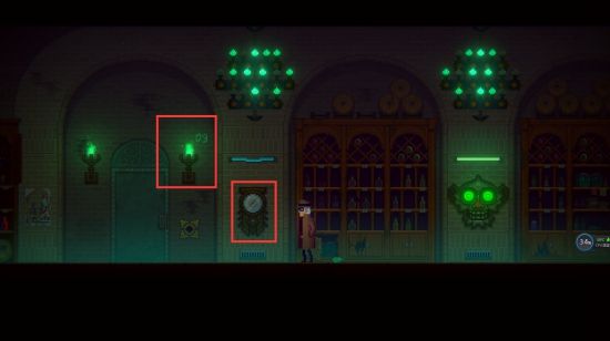 然后钟表右边的柜子上会再出现一瓶酒,拿上回到最左边的酒柜。