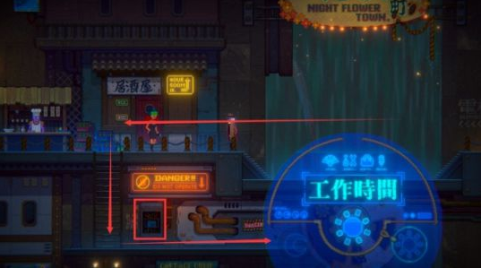 我们打算乘电梯去诊所,但是发现需要绿卡或者整个地区变为休息状态,这个状态似乎和这里的大时钟有关,我们于是一路往左边去调查时钟。