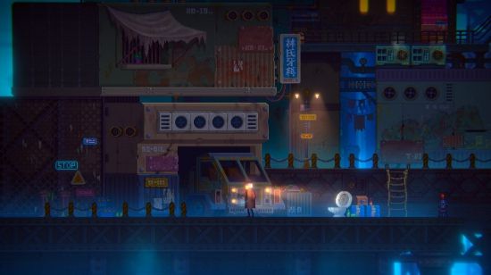 到工坊左边,用刚才的安全绳网接上断掉的楼梯,到下面的平台