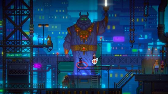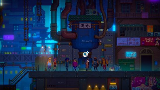 在途经广场街的时候,会遇见黑帮守卫和一群人站在一个供水装置边,原来是供水设备出现了故障,和黑帮说话后可以选择接取【修理供水】支线任务,我们接取任务。
