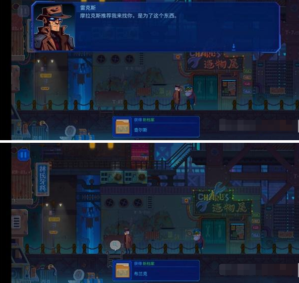推进剧情,与查尔斯对话后获得人物档案8《查尔斯》和人物档案11《布兰克》