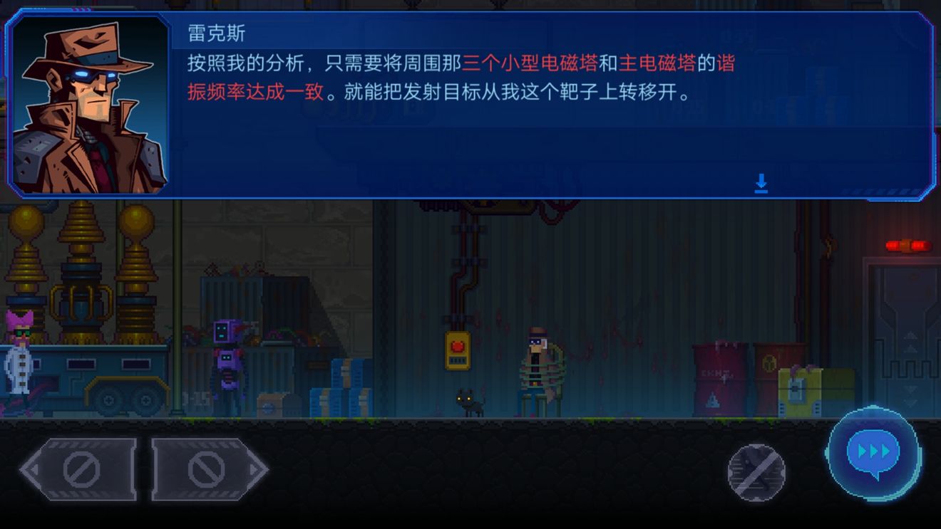 这个场景中有3个电磁塔需要控制威廉调整,分别是: