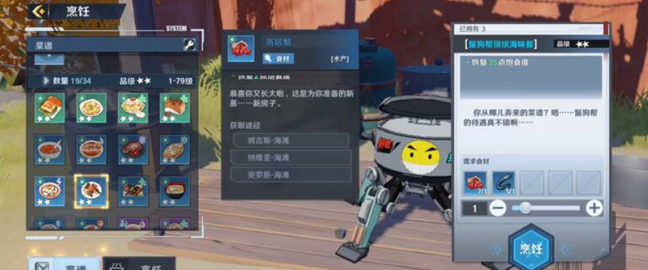 烹饪这个料理的配方为:1寄居蟹+1雷鳗