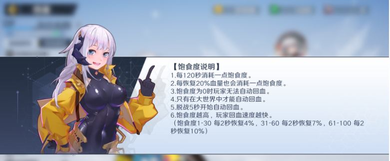 玩家拥有100点饱食度上限,随时间流逝下降。离线状态也会损失饱食度。