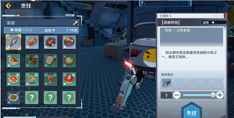 烹饪可以按照已解锁的食谱消耗指定素材料理食物。