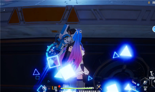 接着我们换出源能手炮打出柱子,站立在上面。