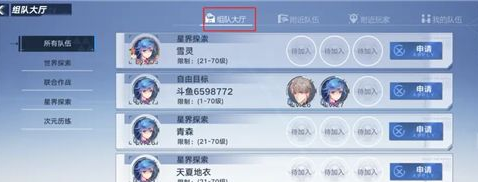 进入大厅之后可以看到房间了,点击申请就可以申请加入队伍。
