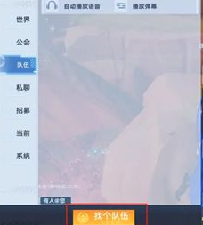 在聊天频道中可以看到队伍选项,点击进入队伍。