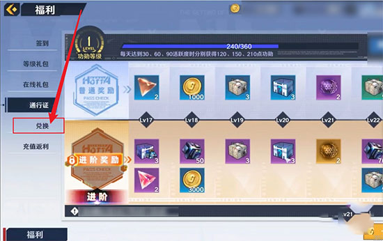 2、点击进入福利界面,找到左侧中的兑换一栏。