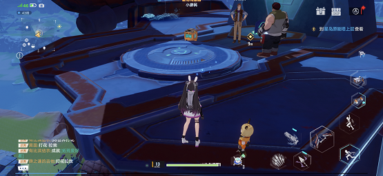2、等这个装置下来之后,玩家要站在上面,然后就可以乘坐这个装置上到星岛原能塔上层;