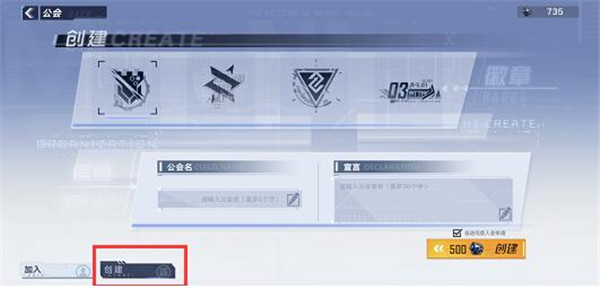 4、最后我们填好公会的名称、宣言以及图标之后,点击右下角的创建,花费500墨晶就可以创建公会了。
