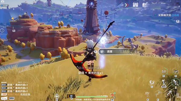 传送到南部环山折跃门,在红石柱上就是调查点,可以先去山上,在借助飞行器飞过去。