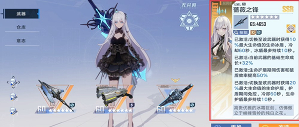 六星:更换这个武器时,给角色施加20%最大生命值的护盾,还为角色提供免控能力。
