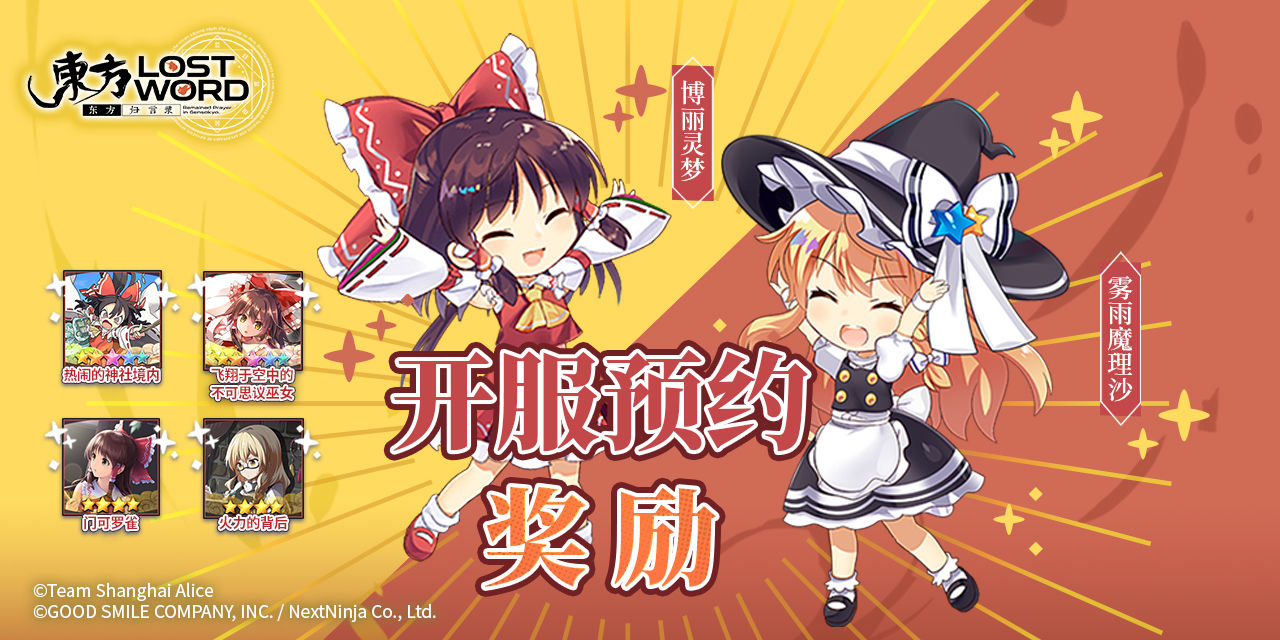 预约达成10万次,奖励:博丽灵梦角色*1、雾雨魔理沙角色*1、封结晶*20、赛钱*6000