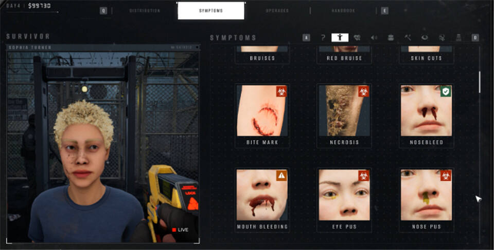 提取的物品会出现在你左侧的箱子里,拿起它,把它放到箱子旁边的机器里,然后按 E 键将物品变成小瓶。把小瓶放到桌子上的分析仪里,再按 E 键,就能发现新的症状(如果之前存在的话)。