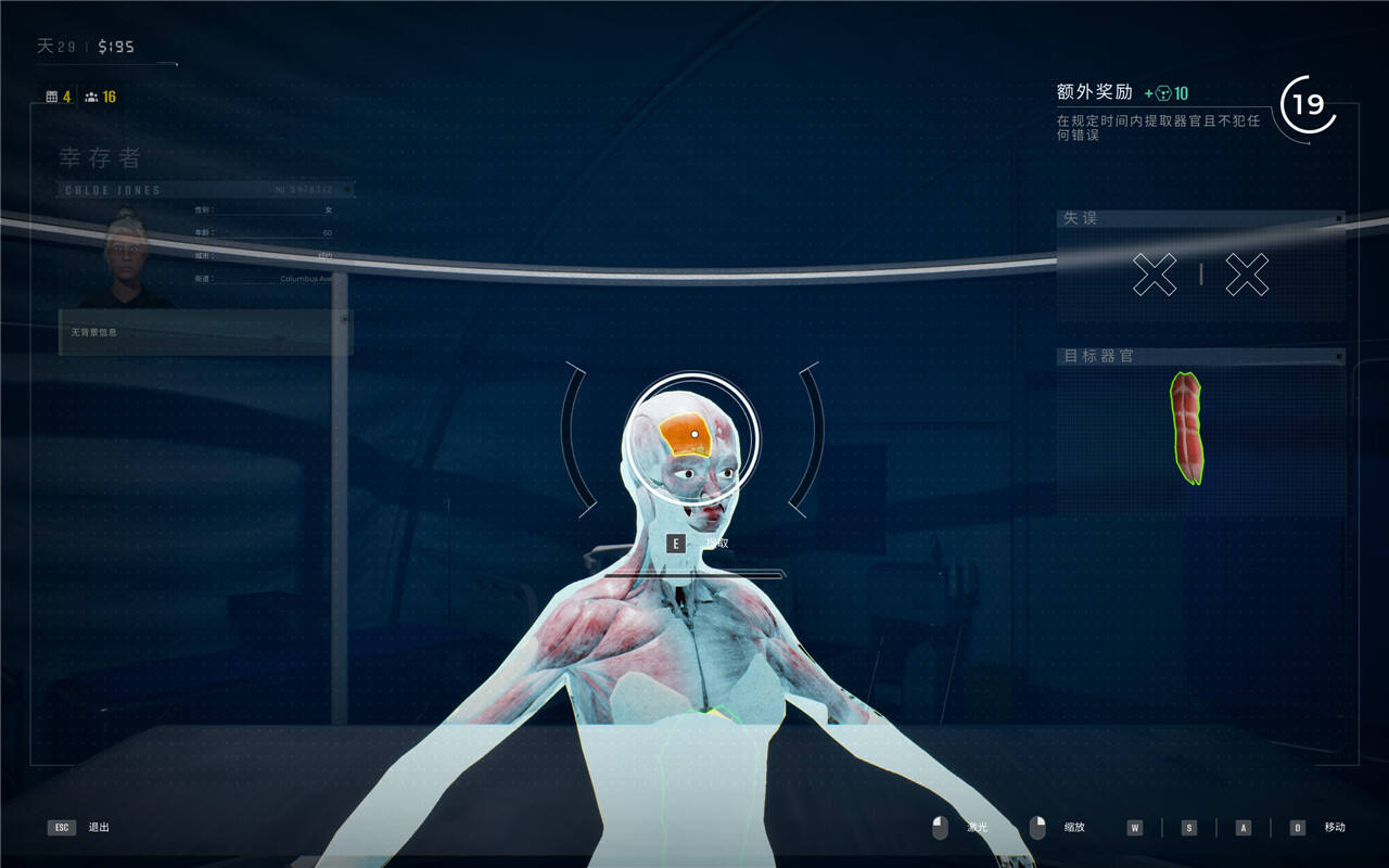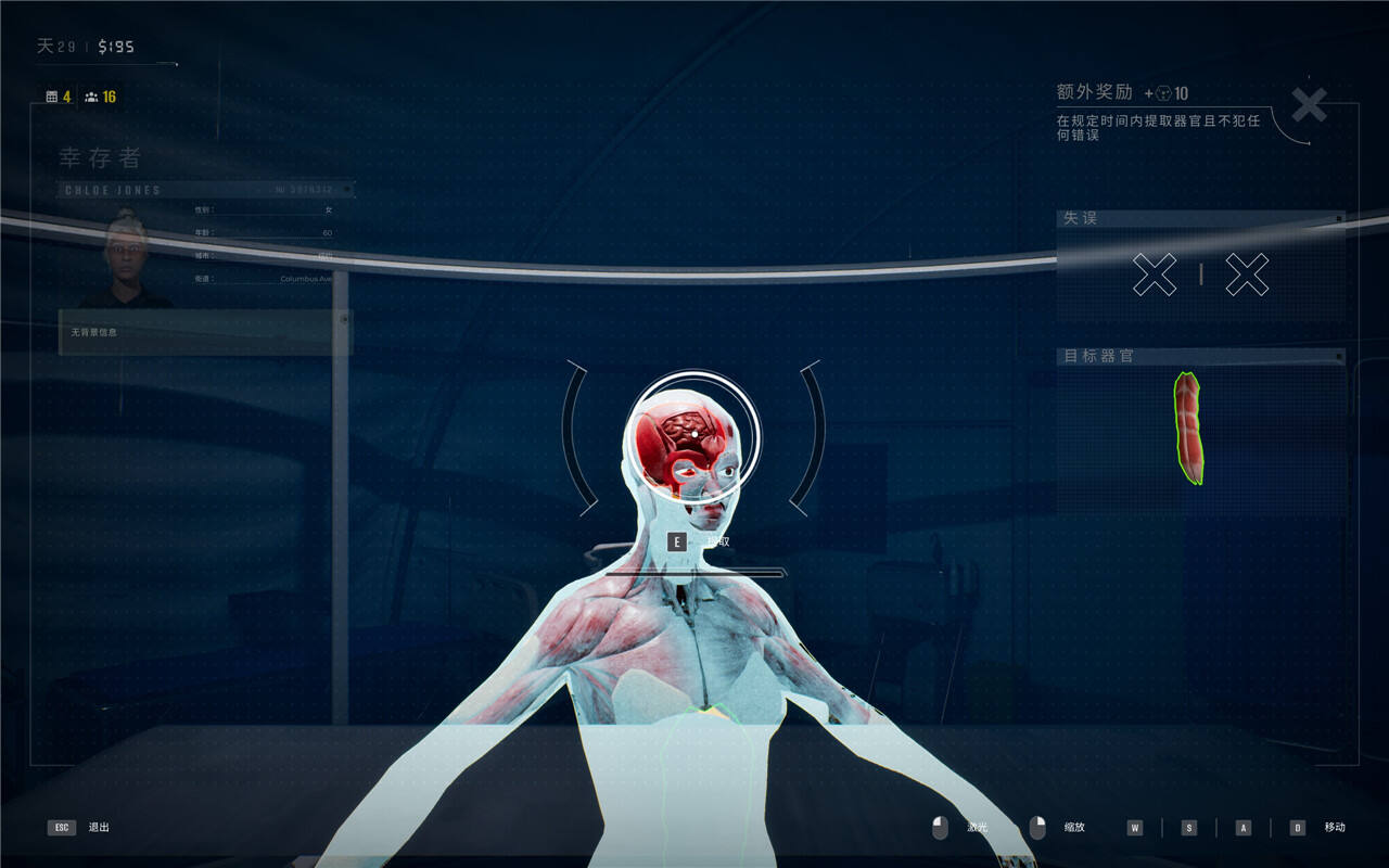 进入到取器官环节,这里无视掉系统分配给你的器官,直接向上直冲大脑门。
