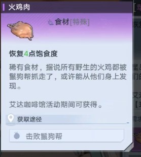 稀有食材,据说所有野生的火鸡都被鬣狗帮抓走了,或许能从他们身上发现。