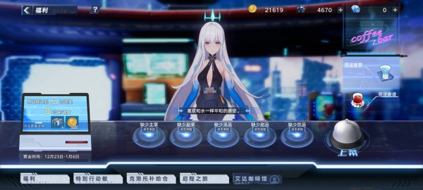 2、来到福利界面之后再点击下方的艾达咖啡馆。