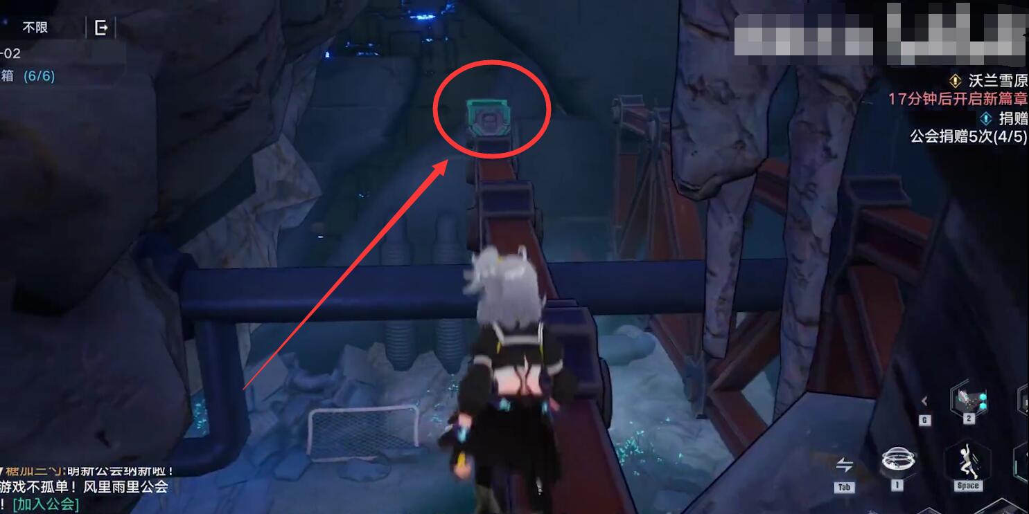 往前面走,会看到一个悬空的台阶,我们先不要跳过去,在左手边的角落有一个宝箱。