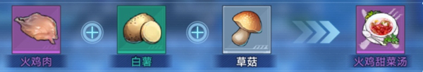 火鸡肉*1+白薯*1+草菇*1。