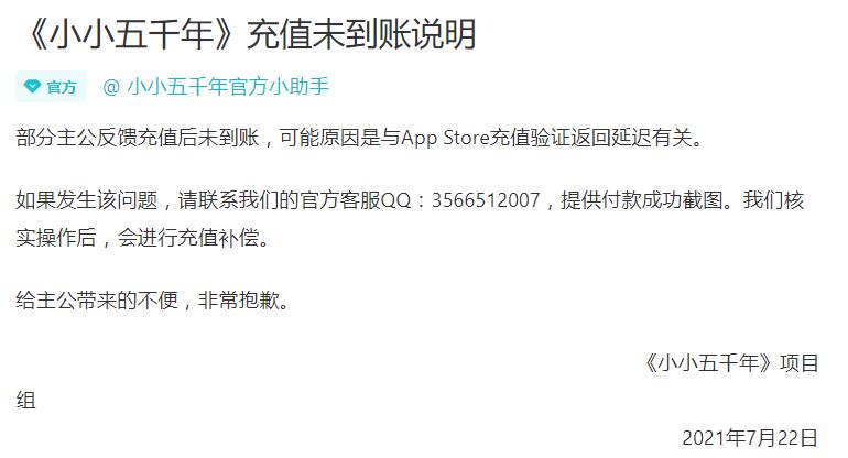 以上就是小编整理带来的《小小五千年》充值后未到账解决办法,大家还喜欢吗?更多精彩内容,请点击关注易采游戏网,小编将持续为您更新!